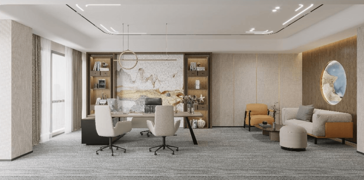 ↑新辦公室裝修風(fēng)格簡約明快時(shí)尚大氣