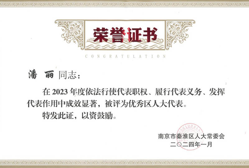 潘麗女士當(dāng)選區(qū)人大代表以來,始終堅持"人民選我當(dāng)代表,我當(dāng)代表為人民"的信念,作為一名民營企業(yè)家,始終堅持"為社會創(chuàng)造價值,為客戶提供服務(wù),為員工謀求福祉"的企業(yè)價值觀,以高度的責(zé)任感和敬業(yè)精神,勇于挑戰(zhàn),開拓創(chuàng)新。在本屆會議上再次被評為“優(yōu)秀區(qū)人大代表”。