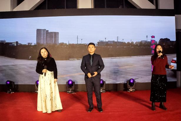 ↑集團總經(jīng)理專務(wù)助理王洋先生通過照片回顧物華電氣產(chǎn)業(yè)園的建設(shè)歷程