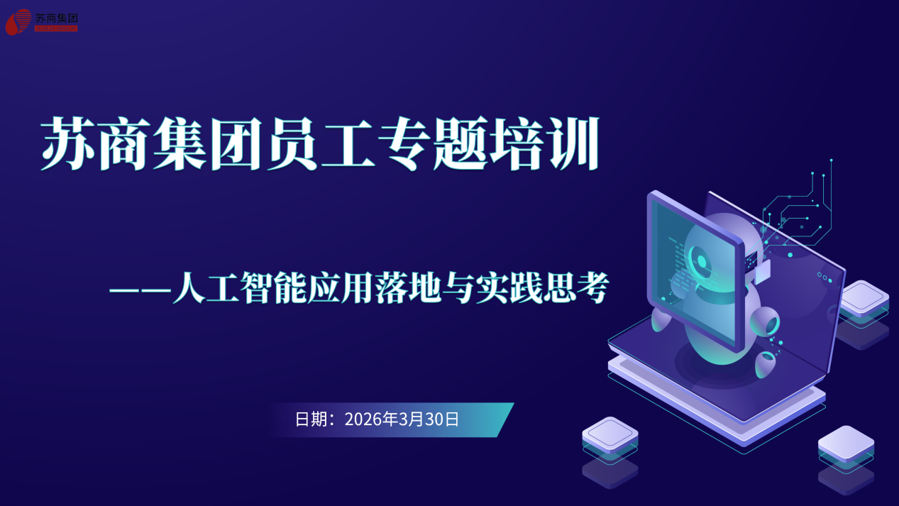 2026年3月30日下午,南京蘇商投資發(fā)展(集團(tuán))有限公司在集團(tuán)總部舉辦了一場以“AI人工智能應(yīng)用落地與實踐思考”為主題的專題培訓(xùn)?;顒犹匮暇┼]電大學(xué)數(shù)字經(jīng)濟(jì)研究所所長、知名數(shù)字經(jīng)濟(jì)專家姚國章教授擔(dān)任主講嘉賓,集團(tuán)高管及各部門員工代表共計50余人參加了此次培訓(xùn)。