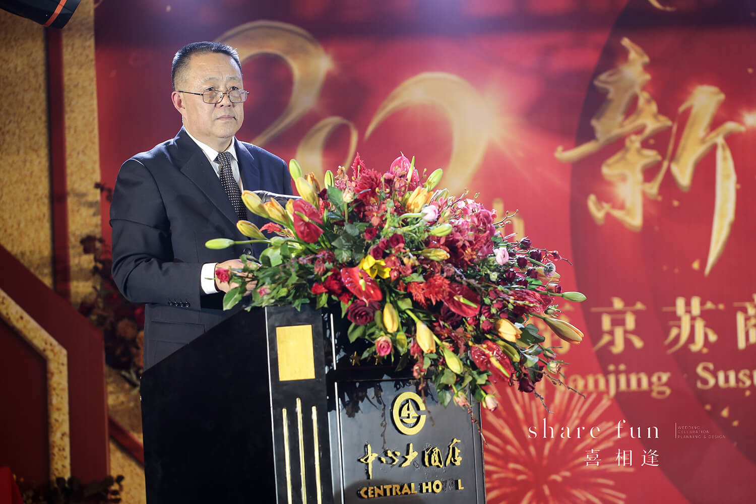 晚會上,蘇商集團(tuán)副總經(jīng)理羊林洲先生首先講話,向與會嘉賓和同仁介紹了蘇商集團(tuán)二十年發(fā)展歷程、近年來集團(tuán)取得的主要成績和未來發(fā)展規(guī)劃。同時(shí)對長期以來關(guān)心蘇商集團(tuán)發(fā)展的各級領(lǐng)導(dǎo)及合作伙伴表示衷心感謝!