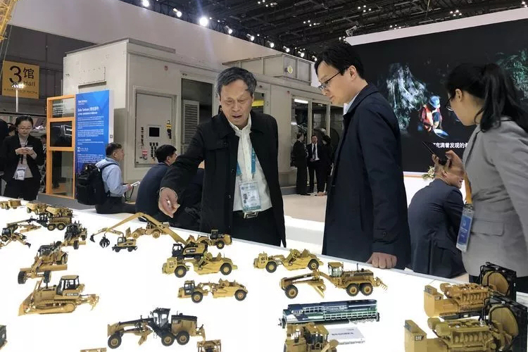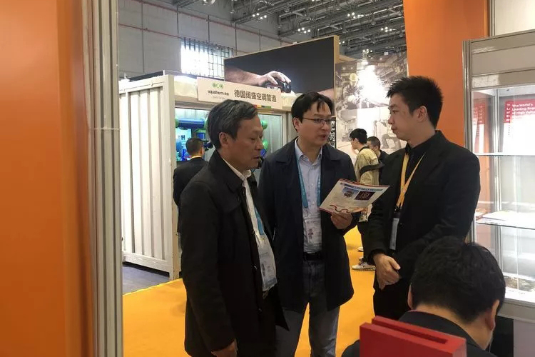 ▲董事長在高端制造展位前詳細了解電傳動內燃機車等參展產品的性能優(yōu)勢。