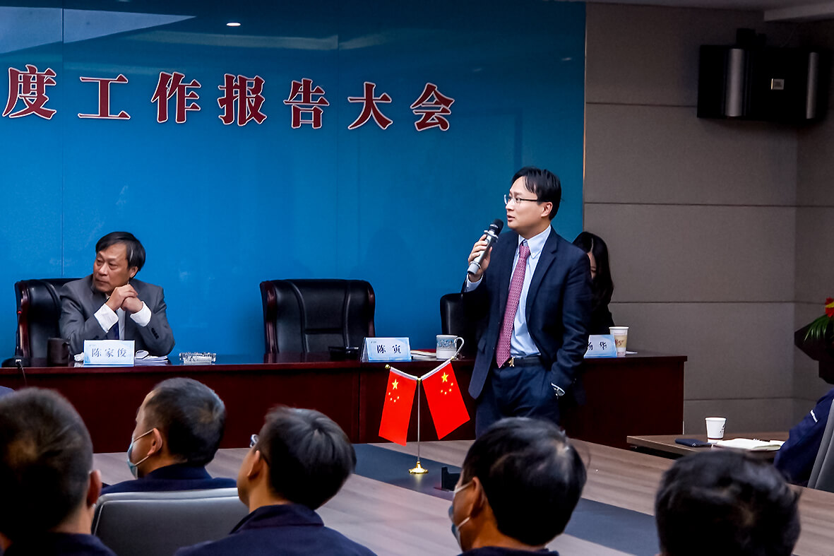 最后,蘇商集團董事長陳家俊先生作了題為《堅守底線保穩(wěn)健 提質增效再出發(fā)》的工作報告,他在全面總結2021年工作時強調,盡管過去一年受到了新冠疫情不斷反復、原材料漲價、全國限產限電等因素的影響,但蘇商人臨危不亂,戮力同心,拼搏進取,集團仍然取得了喜人的成績。全年實現銷售收入超10億元,利潤超1億元,納稅超4000萬元。他在部署2022年工作時,分析了集團所面臨的形勢,明確了戰(zhàn)略方向,下達了總體目標,提出了總體工作要求。