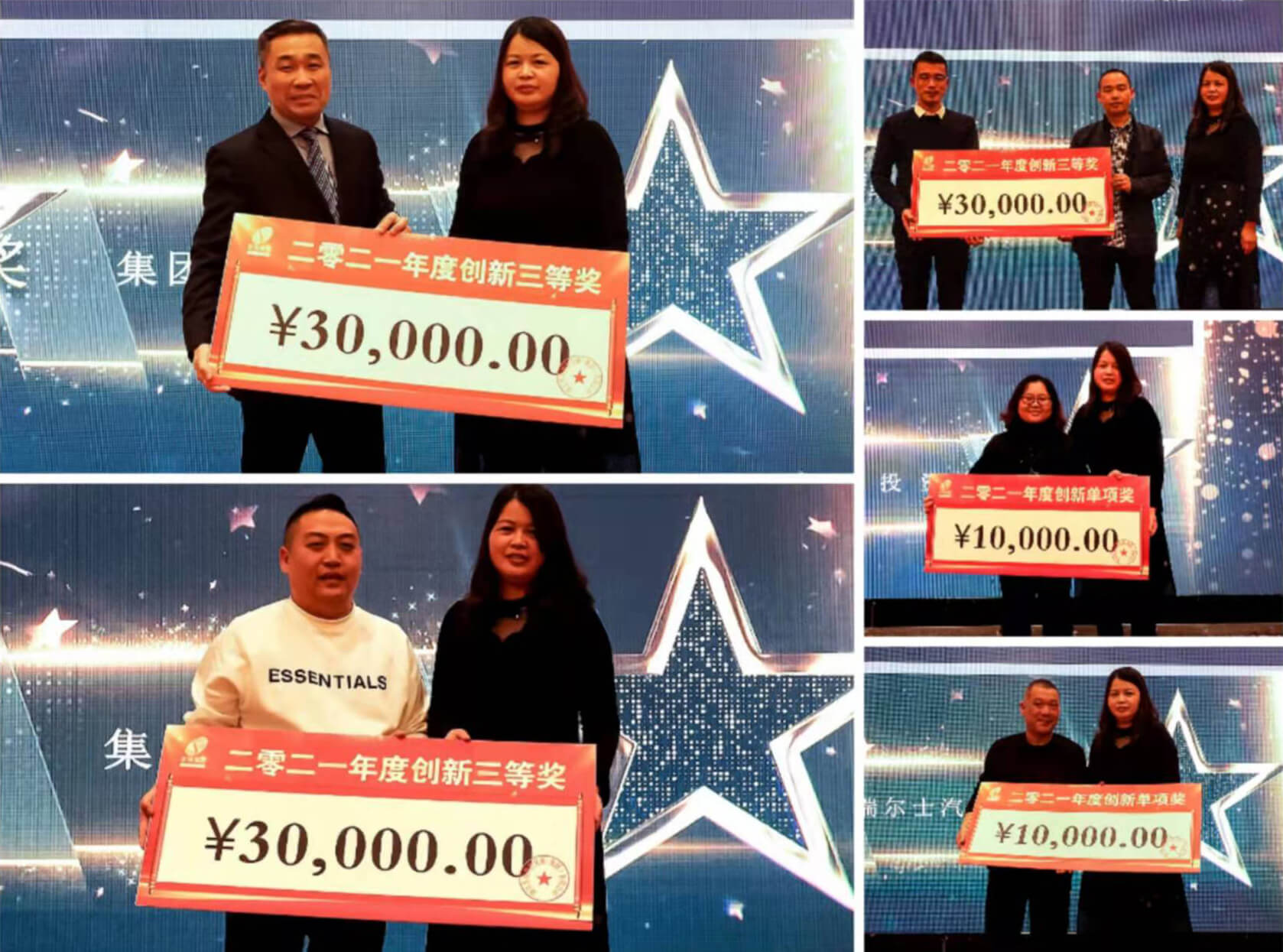 接著,集團副總經理陳寅先生和集團總經理助理楊華女士為獲得2021年度“創(chuàng)新二等獎”、“創(chuàng)新三等獎”以及“創(chuàng)新單項獎”的集體頒發(fā)獎金。