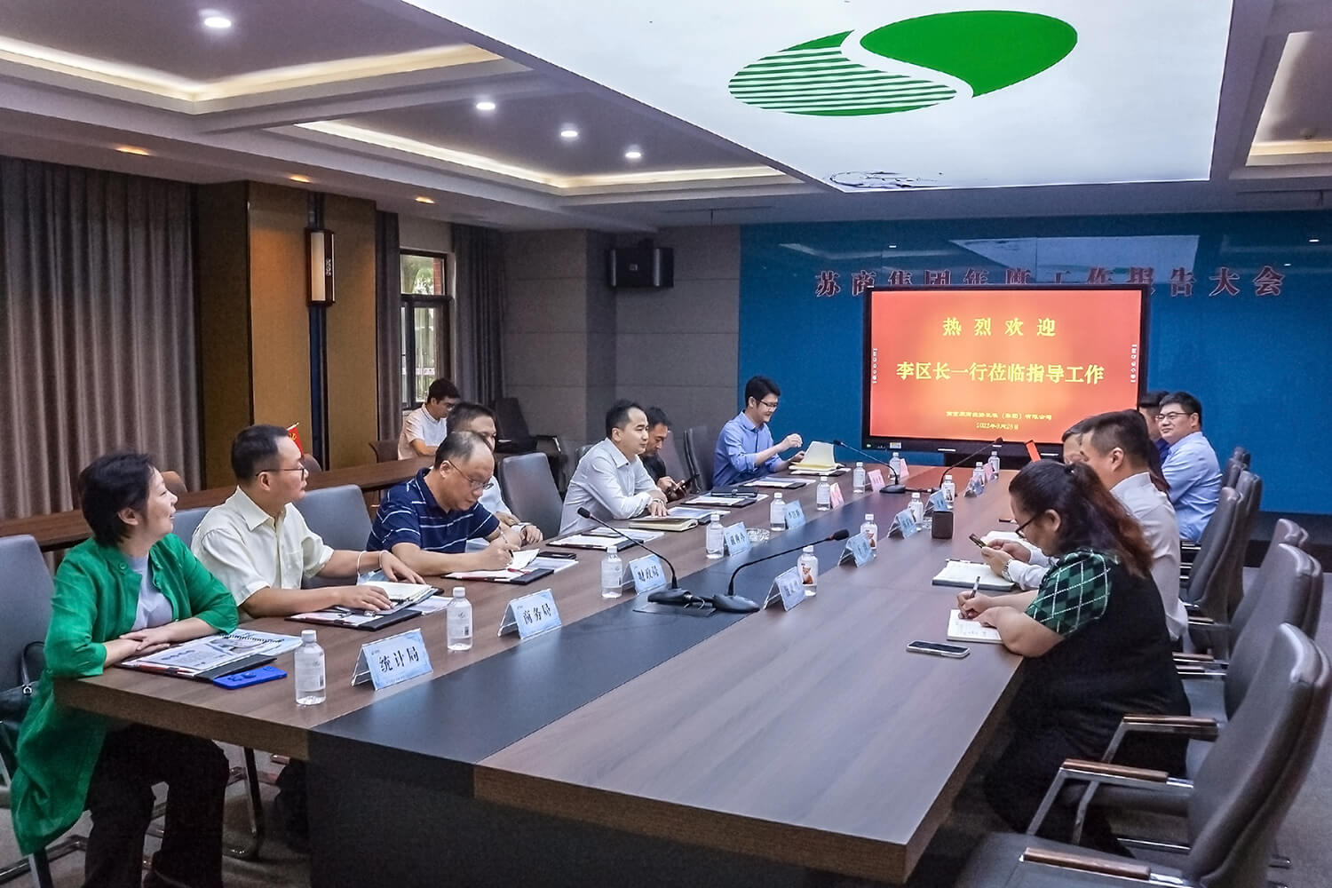 首先,陳家俊董事長代表蘇商集團(tuán)向李區(qū)長一行蒞臨指導(dǎo)工作表示熱烈歡迎!對秦淮區(qū)政府一直以來的關(guān)心支持表示衷心感謝!
