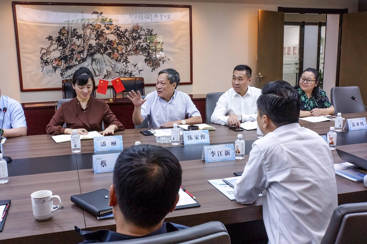 陳家俊董事長在李區(qū)長一行觀看完蘇商集團(tuán)宣傳片后,介紹了公司三大事業(yè)部的基本情況,詳細(xì)講解了集團(tuán)裝備制造事業(yè)部所轄軌道交通電氣化和軍用特種車輛兩個(gè)產(chǎn)業(yè)的亮點(diǎn)和特點(diǎn),著重介紹了集團(tuán)商業(yè)管理事業(yè)部在秦淮區(qū)的發(fā)展歷程。